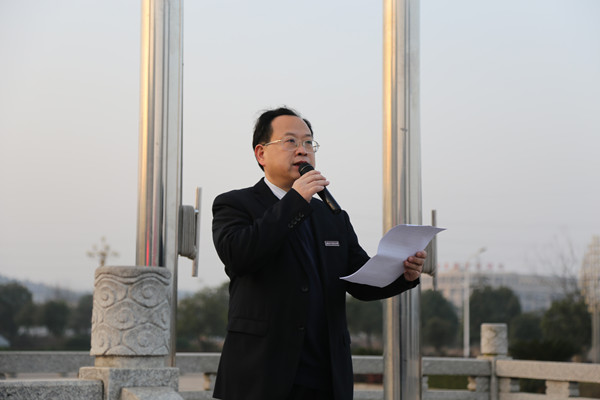 2月29日清晨,校团委全体工作人员、大学各院团委书记及全体校级学生组织、各学院学生代表齐聚含浦校区南大门广场,举行以“青春旗帜,点赞中国”为主题的升旗仪式。副校长葛金文参加仪式并讲话。