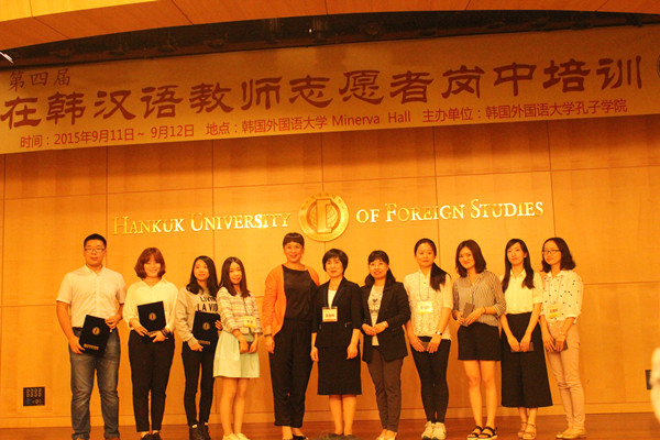 季可可(右四)在韩国首尔进行汉语教师志愿者岗中培训