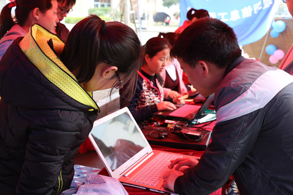 管理与信息工程学院计算机专业学生正在为同学们察看、维修电脑