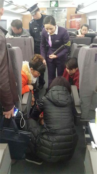正前往怀化参加义诊的附二院肛肠科主任王真权,皮肤科副主任向丽萍,事业发展部副主任张晶晶听到广播后,迅速赶往一号车厢,为患者做了急救处理。