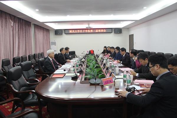 自2014年9月我校连同湖南师范大学、韩国圆光大学建立全世界第一家研究型孔子学院以来,孔子学院发展健康,三校借此平台交往频繁。12月8日上午,孔子学院第二届理事会在我校含浦校区行政楼二楼会议室召开。韩国圆光大学校长金道宗,我校校长廖端芳,湖南师范大学党委副书记刘起军以及孔子学院其他理事出席了会议,廖端芳致欢迎辞。