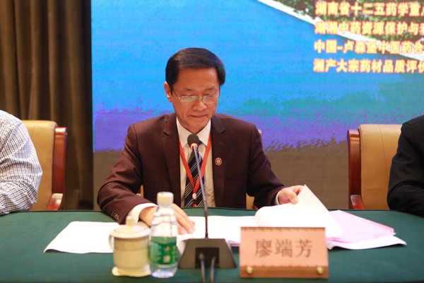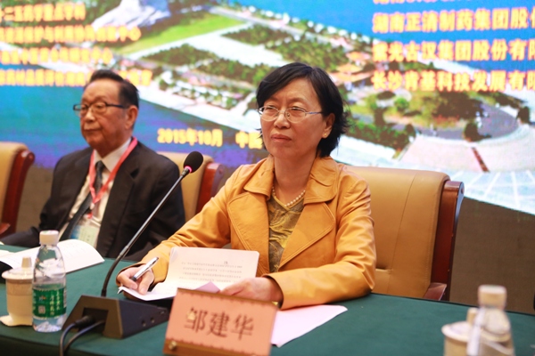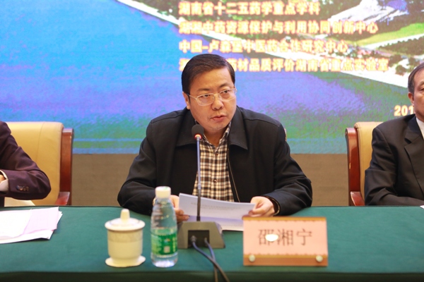 省卫计委副主任、省中医药管理局局长邵湘宁介绍了湖南省中医药事业发展的基本情况,高度肯定了我校为湖南中医药事业尤其是中药产业做出的卓越贡献,寄望各位与会专家交流思想,碰撞智慧,开拓视野,推动中药国际化、现代化建设。