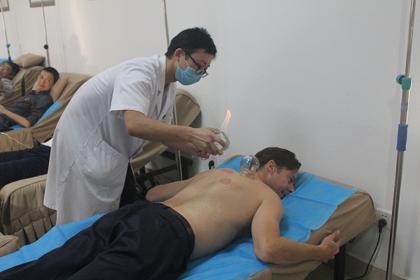 客人一行先后考察了第十二、十一病区,第六病区和湖湘名医堂,并在十二病区医生办公室与蔡美主任医师带领的肿瘤四科团队进行座谈,了解了医院肿瘤中医临床治疗特色及科研进展。考察过程中外宾对医院中医特色治疗表现出浓厚的兴趣,参观十一病区中医特色治疗室时,主动提出要亲身体验拔罐,经过与陪同干部沟通后,当班医护人员立即满足了外宾的这一请求,拔罐后外宾连连叫好,还兴致勃勃地分享感受,并建议同伴也一同参与。