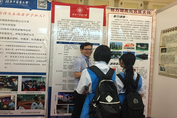 此次教育展得到了“马来西亚留华同学会”的精心组织安排,受到了中国驻马来西亚大使黄惠康先生的大力支持,也赢得了马来西亚多家主流媒体的广泛关注,吸引了大批马来西亚中学生及家长前来咨询。我校参展人员向前来咨询的学生、家长和老师发放学校宣传资料,并详细介绍我校的办学特色和优势,积极推介湖湘中医文化和名医大师,通过视频、图片等多种形式将我校留学生的学习、生活情况呈现给马来西亚中学生,受到了学生和家长的一致认可。