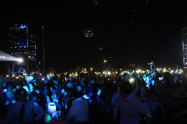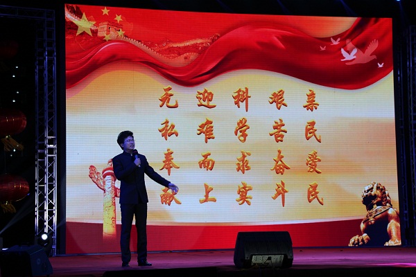 9月29日晚,由我校团委主办的庆国庆、迎新生文艺晚会在含浦校区图书馆前坪举行。全体在家校(院)领导,师生代表及2015级新生等观看晚会。晚会上,校长廖端芳代表学校党委、行政致辞,向2015级新生致以热烈欢迎,向广大师生员工致以节日的问候和祝福。
