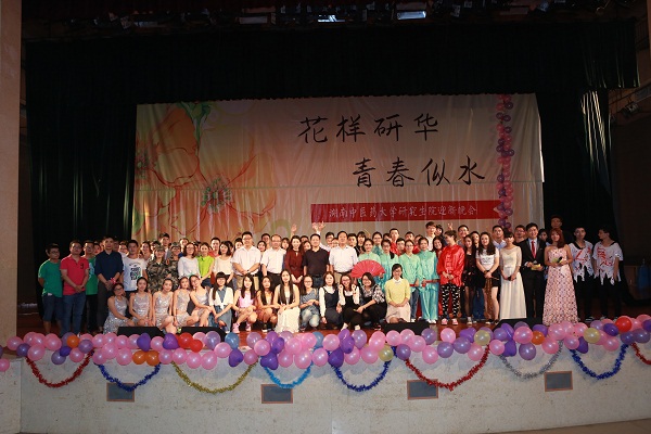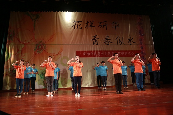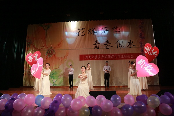 9月26日晚,含浦校区学生活动中心一片欢声笑语, 研究生院“花样研华,青春似水”迎新晚会在这里举行。研究生院、学工处、校团委等单位负责人及师生代表欢聚一堂,观看演出。晚会在青春洋溢的舞蹈《I LOVE YOU》中拉开帷幕。随后,动感十足的街舞《I BELIEVE》瞬间点燃观众的热情;研究生院研究生会心康部为观众们献上温柔而唯美的手语舞,深情诠释了“尊重他人”与“悦纳自己”;风格别具、造型夸张的《僵尸舞》给观众带来了灵异、节奏鲜明的特殊视觉享受;反串节目《甄嬛传》凭借演员们出色的演技和幽默的剧情让台下的观众们爆笑不断;而《天耀中华》节目则结合了整齐的手语、深情的朗诵、以及柔美的舞蹈等多种艺术形式,学子们在深情的朗诵中郑重盟誓“践行南丁格尔的誓言”,为祖国的医学事业而奋斗终身”;《瑜伽、太极、洞箫》用流畅而刚柔并济的太极、瑜伽和悠扬的箫声在视觉和听觉上给观众们带来了中华传统文化的饕餮盛宴;小品《我是主角》High翻全场,将晚会推向高潮。晚会节目形式丰富多彩,既有传统的歌曲、舞蹈,又有话剧、朗诵、等演等,将研究生院学子积极昂扬、踏实奋进的精神风貌演绎得淋漓尽致。晚会在情景剧《时光胶卷》里落下帷幕,军训、单车恋人、考试、篮球赛等一幕幕真实而感人的场景引发了同学们对大学生活的无限回忆和眷恋。
