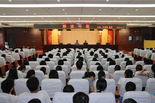 当日下午4点,医院国医楼20楼会议室座无虚席,医院在院班子成员、中层骨干、临床授课教师、学生300多人听取讲座。何清湖教授从四个方面阐述了中医文化与优秀教师、医药大学、中西医结合医学发展模式之间的辩证关系。一、提出了大学优秀教师的四个标准:爱、博学、创新意识与信仰。二、大学的三大功能:科学研究、社会服务功能与文化的引领与创新。三、从中西医结合模式看生物医学的发展,西医是一门实验医学,而中医是一门经验医学(有着病症结合、优势互补、求同存异的整体观念)。四、从中医文化看护理学的发展,提出了整体护理理念、辨证施护、治未病理念。