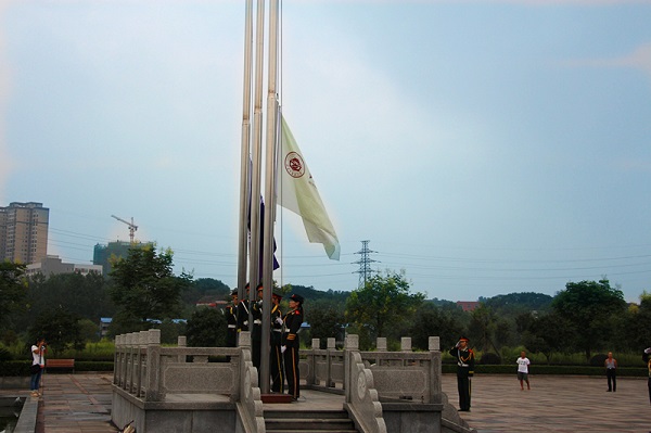 9月3日,含浦校区,早七点,升旗仪式举行。蓝天下,五星红旗、大学校旗、研究院院旗冉冉升起。副校长葛金文,党委宣传统战部、学生工作处、校团委负责人及各二级学院主管学生工作负责人、师生代表参加仪式。