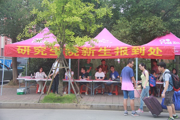 8月29日,研究生院开展了为期一天的2015级研究生新生迎新 工作。2015年我校研究生院共录取445名新生,其中包含397名硕士研究生和48名博士研究生。研究生院全体职工及学生志愿者从早上七点开始一直奋战至下午五点半,帮助同学们依次完成报到注册、材料接收、档案查收和宿舍分配四个环节的新生报到手续.