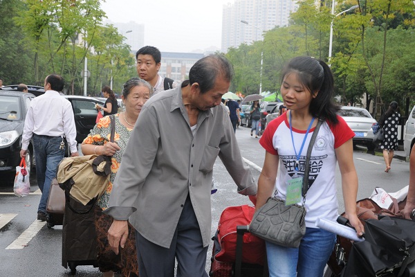 13级应用心理二班杨秀云,这个娇小的姑娘,一次又一次笑容满面,接过新生沉甸甸的行李,也接过那份沉甸甸的信任与情意