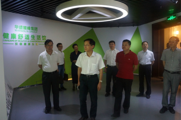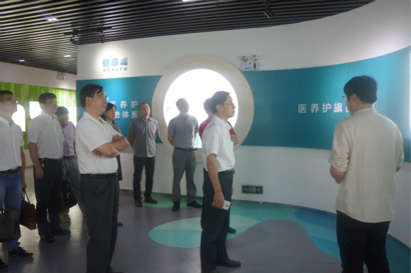 7 月 16 日 下午,湖南中医药大学校长廖端芳、副校长何清湖率校办、教务、发改、宣传统战、针推、护理等部门和学院负责人参观华盛千鹭湖生态度假区,并对千鹭湖国际乐龄社区进行了实地考察。