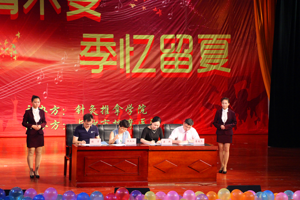 会上,针灸推拿学院院长李铁浪与三家单位进行针灸推拿学院奖助学金签约仪式。