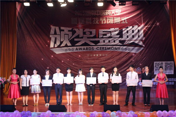 5月28日晚,由校团委联合科技处、医学基础教学实验中心共同举办的大学首届科技节闭幕式暨颁奖盛典在含浦校区大学生活动中心举行。我校副校长周小青,校团委、科技处、学生工作部、人文社科学院、医学基础教学实验中心等相关单位负责人及师生代表等参加典礼,容纳五百多个座位的活动中心座无虚席。周小青宣读《关于表彰首届“科技节”系列比赛获奖个人及单位的决定》,鼓励广大师生继承和弘扬科创精神。此次科技节闭幕式暨颁奖盛典共分为“知行合一”、“学思勉知”、“科创青春”、“矢志有成”四个篇章。典礼现场为我校第四届实验技能大赛、2014——2015知识产权抢答赛、第二届中药讲解大赛、第三届科普作品大赛、第十二届“众泰杯”长沙市科技创新创业大赛、第三届“远志杯”全国高等中医药院校大学生课外学术科技作品竞赛、第十一届“挑战杯”湖南省大学生课外学术科技作品竞赛校内选拔赛获奖选手颁奖,同时授予丁丽蓉等6名同学2014——2015年度助研计划“优秀学子”称号;授予针灸推拿学院科技部等6个单位“优秀组织奖”荣誉称号;授予李杰、叶利军、王军文3人助研计划“优秀指导老师”称号等。
