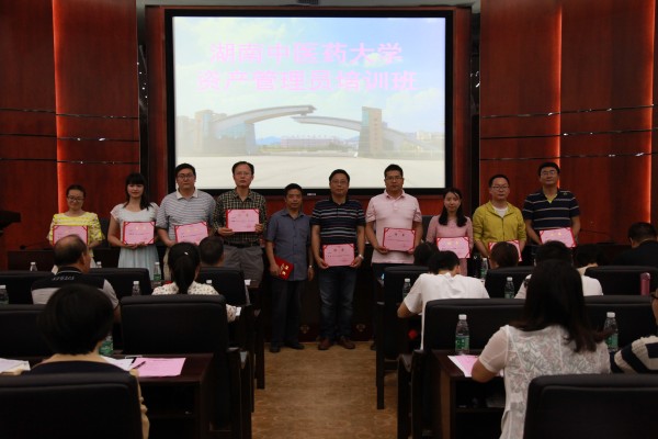 资产管理处副处长贺林宣读了《关于聘任湖南中医药大学二级资产管理员的通知》,对二级资产管理员工作职责进行了说明。李春湘、贺林向受聘二级资产管理员颁发了聘书。