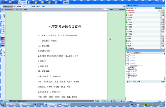 研究开题是研究生培养工作的重要一环,关系到研究研究生的培养质量;对于学生汲取多方面意见,完善课题研究工作与计划都有着重要意义。为了提高科研认识,增进师生交流,确保培养质量,4月1日-2日,我校中医诊断研究所首次成功进行研究生网络预开题。网络开题会议现场流畅的音频、视频效果令会议真实、现场感十足;不受时间、地域限制,手机、电脑通过网络便可登录使用,在经济、便捷、适用、安全等方面都取得了重大突破,切实节约了大量时间、资源和资金,显著提高工作效率。此外,网络会议同时支持数百人同时在线,并支持多场会议同时进行。
