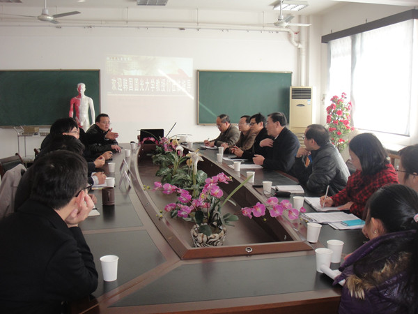 下午,教授们根据所从事的专业方向,分别前往针灸推拿学院和药学院进行了座谈交流,双方就感兴趣的课题、今后可合作的方向进行了深度沟通,并就我校药学院学生赴圆光大学短期交流一事初步达成了共识。圆光大学教授们表示,期待今后在教学与科研中与我校开展全面、具体的合作,以实现资源共享、优势互补,共同推动中医药文化的传播与发展。