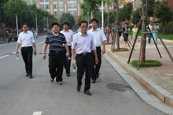 9月5日下午,校长廖端芳、副校长彭清华及相关部门负责人巡视校园迎新氛围布置。