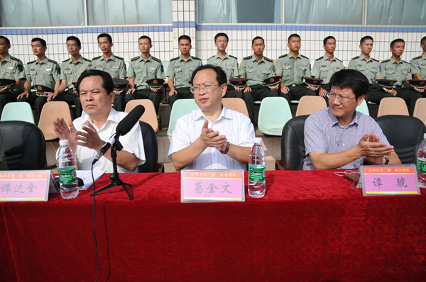 9月7日上午,我校2014级新生军训动员大会在我校含浦校区综合体育场隆重举行。研究院院长、大学副校长谭达全、大学副校长葛金文、相关部门负责人、各二级学院学生工作负责人,国防科技大学指挥军官基础教育学院付晓少校、李军旺上尉及国防科技大学帮训教官们与2014级全体新生一同参加动员大会。大会由武装部部长姚旭东主持。