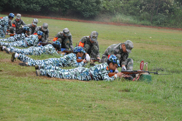 我校组织2014年新生军训进行实弹射击训练