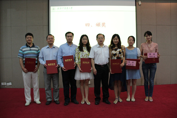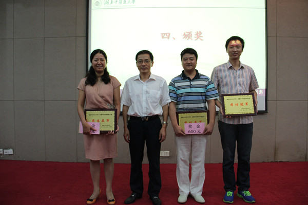 葛金文宣读了第三届辅导员职业技能竞赛获奖团体和个人名单以及《关于公布 2014 年度湖南中医药大学辅导员工作优秀论文名单的通知》。仪式对获得团体奖的 3 个学院,个人综合奖的 7 名辅导员,个人单项奖的 13 名辅导员以及获得辅导员优秀论文一、二、三等奖的 20 篇论文进行表彰颁奖。