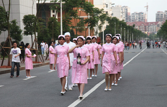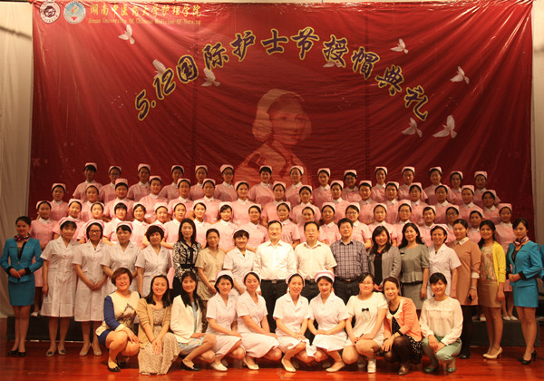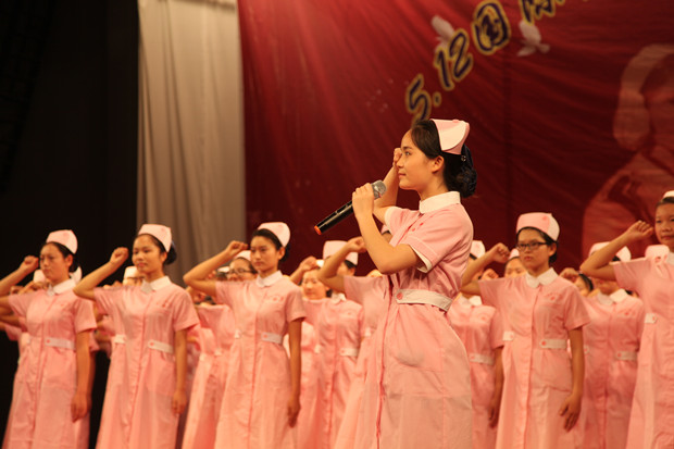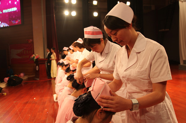 当天,师生们欢聚一堂,表彰了一批优秀的护理学子,观看了护院风采视频,欣赏了古典舞《相思引》、护理礼仪秀、诗朗诵《赞美你,永远的南丁格尔》等精彩的文艺节目演出,并为护理学院 2013 级共 335 名学生进行了授帽。