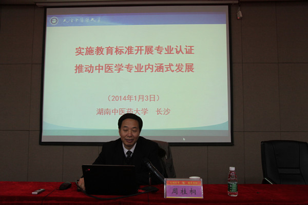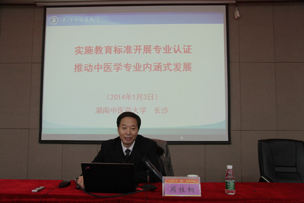 1 月 3 日下午,学校在国际交流中心学术报告厅举行中医学专业认证动员大会。教育部高等学校中医类教学指导委员会秘书长、天津中医药大学副校长周桂桐应邀出席,全体在家校领导、学校各相关部门负责人、中医学院、针灸推拿学院、中西医结合学院、第一中医临床学院、第二中医临床学院处级干部、科教科正副科长、教研室(实验室)主任、教学秘书及学生代表等 160 余人参会。校(院)党委书记黄惠勇主持大会。