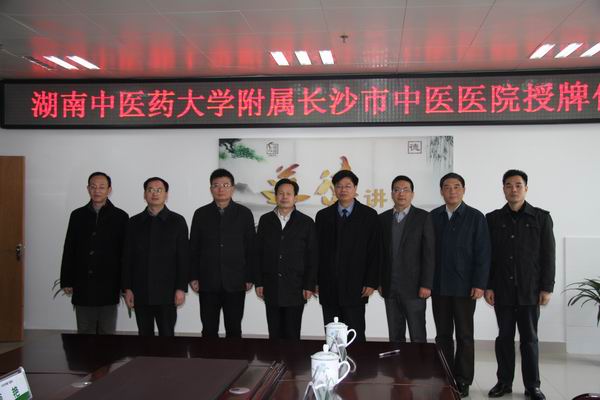 12 月 1 1 日上午, 我校附属长沙中医医院授牌仪式在医院星沙本部第二住院楼五楼会议室举行。学校党委副书记、副校长黄政德,副校长彭清华,长沙市卫生局副局长黄赣湘,学校教务处负责人及医院领导班子成员参加仪式, 仪式由 医院党委书记邓雄飞主持。