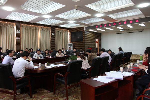 4 月 27 日 下午,学校召开办公室主任工作会议,就学校办公室近期工作进行安排部署。校(党)办公室主任刘平安主持会议,各二级单位办公室负责人参会。