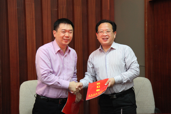 葛金文副校长代表我校与李能总裁签订了养天和爱心助学项目合作协议。