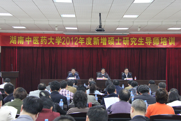 4 月 13 日 -14 日,我校为期 2 天的 2012 年度新增硕士研究生指导教师培训在东塘第一附属医院多功能会议室举行。大学校长廖端芳、副校长何清湖出席开幕式。各相关学院、附属医院研究生工作分管领导及科教科负责人、 2012 年度新增硕士研究生指导教师共 137 人参加了此次培训。