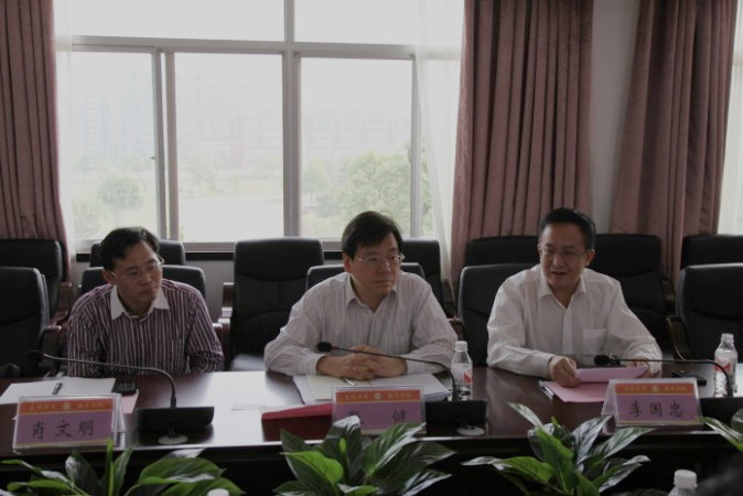 4 月 17 日 下午,省卫生厅厅长张健、省中医药管理局副局长李国忠、综合处处长肖文明一行三人来我校调研湖南中医药事业发展,并在我校办公楼二楼会议室召开座谈会。校长廖端芳、副校长何清湖、副校长葛金文以及部分中药学专家、相关职能部门代表参会。