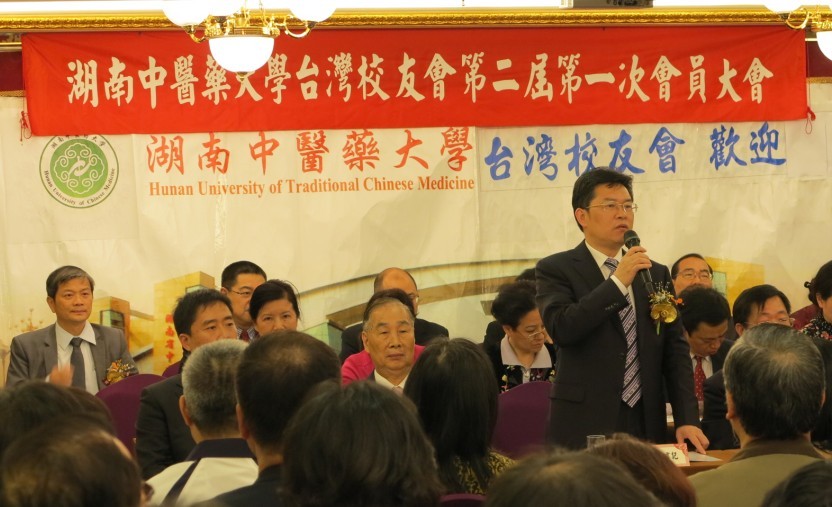 党委书记黄惠勇出席大会并作重要讲话。他首先向校友们通报了我校 2012 年度主要工作情况,并简要向校友们介绍了学校各项工作的总目标、总任务、总要求及办学定位、方针等。他指出,学校要坚持“开放办学、特色办学、质量办学”,并真诚邀请广大台湾校友常回母校看看,希望通过台湾校友们把传统中医药文化在宝岛台湾发扬广大。