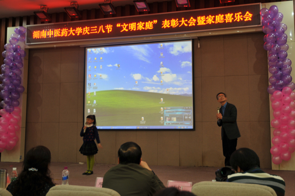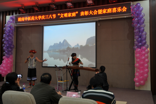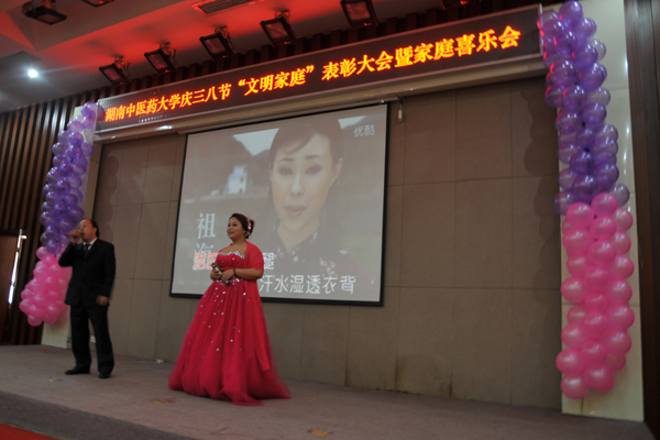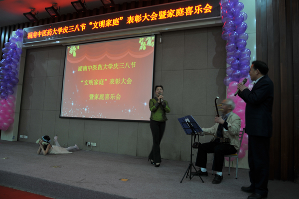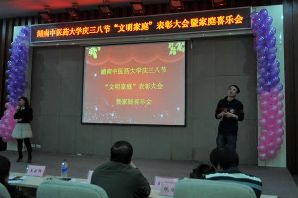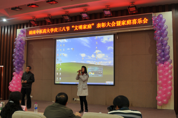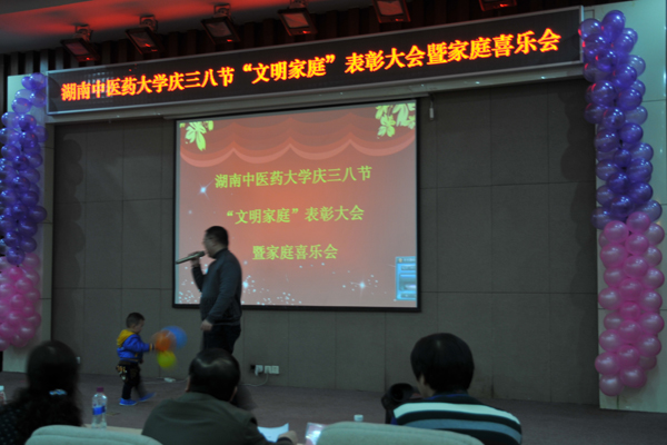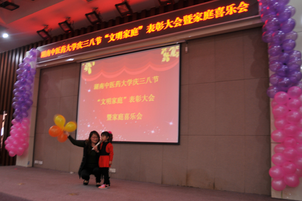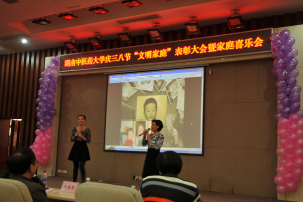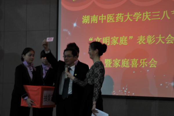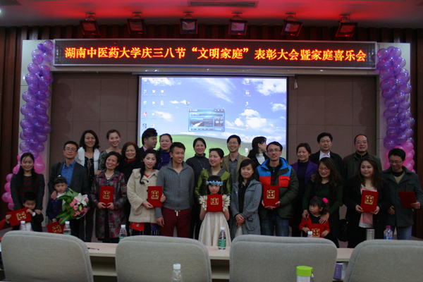 为了弘扬家庭文明新风尚,建设美满家庭,丰富女职工的业余文化生活, 3 月 7 日下午,我校在国际交流中心举行庆“三八”文明家庭表彰大会暨家庭喜乐会。大学校长廖端芳,研究院院长、大学副校长、工会主席谭达全、校长助理虢剑波、校工会副主席谢辉、李选艳、蔡人洁等和来自各个部门、学院的代表女职工欢聚一堂。