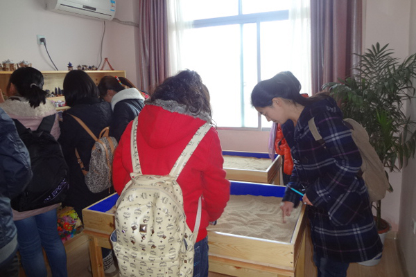 新生在沙盘游戏室进行体验