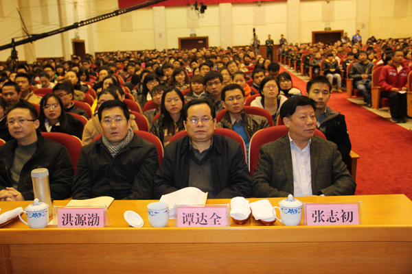 12 月 13 日 上午, 研究院院长、大学副校长谭达全率组织人事部部长易刚强及30 余名师生参加了在省委礼堂举办的全省教育系统践行社会主义核心价值体系先进典型事迹报告会,省委副书记梅克保出席并讲话,报告会由省委常委、省委宣传部部长许又声主持。