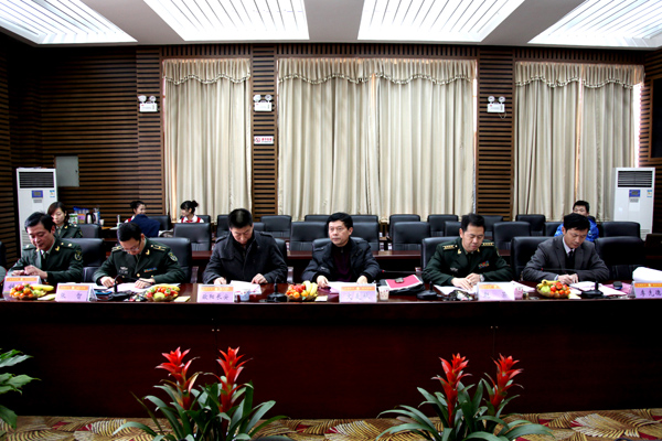 12 月 18 日下午,由湖南省学生军训办公室副主任、省教育厅体卫艺处副处长文麦秋、国防科大学生军训教研室主任赵荣带队的督查组一行五人莅临我校对高等学校军事课教学工作进行督查。汇报会在含浦校区办公楼一楼会议厅举行。大学校长廖端芳,研究院院长、副校长谭达全,副校长葛金文出席。会议由文麦秋主持。