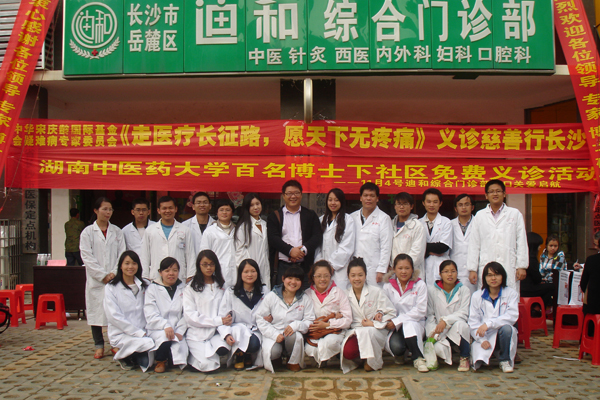 为了帮助医学生积累临床经验,培养学生价值体验和职业情操,宣传中医、传承中医,提高居民卫生保健意识,带动基础医学技能全民化,推进社区医疗服务格局。11 月 4 日,我校研究生处在长沙市岳麓区迪和综合门诊部门口针对附近的多个社区举办了“关爱生命,关注亚健康——百名博士下社区”大型义诊活动。