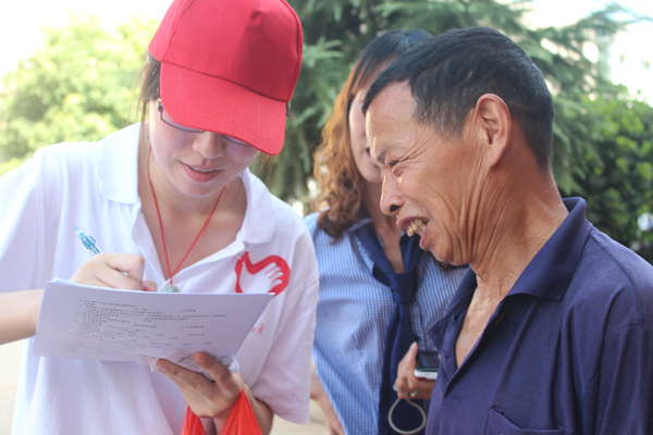 由于当地卫生院的大力宣传,中医学院的“三下乡”活动得到了当地群众的大力支持,前来诊疗病人的年龄跨度为 1 岁到 77 岁,但其中尤以高血压及其继发病变、风湿病、妇科病居多。在活动过程中,志愿者们分工协作,各司其职,进行药品分发,共发放药品四万余元;对当地群众进行关于“农村医疗和文体活动”的问卷调查;维持现场诊疗秩序,协助老师了解病人基本情况;对活动现场进行拍摄。并有 4 名同学与李铁浪院长以及部分老师对当地 4 户困难家庭做了家访,赠送慰问金,给留守儿童赠送书包。