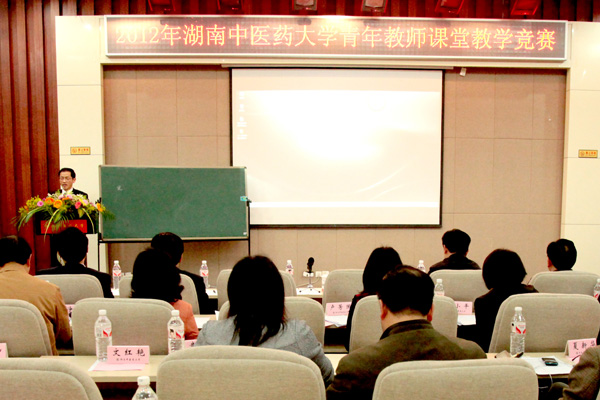 4 月12 日上午,2012 年度青年教师课堂教学竞赛活动在国际教育学院报告厅举行。此次竞赛共有 16 位选手、12 位教师评委、10 位学生评委,选手和评委均来自各学院及各部门。各学院及各部门还分别组织了部分教师和学生来观摩。校长廖端芳,研究院院长、副校长谭达全,副书记、副校长黄政德,副校长何清湖,副校长葛金文出席,校工会、组织人事部、教务处、学生处和各二级学院主管教学的副院长参加了此次活动。竞赛活动由教务处处长熊辉主持。