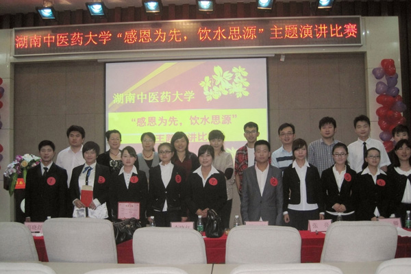 4 月 23 日下午,由我校学生工作处学生资助管理中心主办的 “感恩为先,饮水思源”主题演讲比赛在我校含浦校区国际教育学院报告厅圆满落幕。此次活动由湖南省教育厅下达,旨在 号召广大同学加强感恩意识, 从认识和实践结合的高度认真总结教育后的收获、体会,进一步提升自己的感恩品质。历时近一个月的各院选拔,经过激烈紧张的初赛、复赛,来自 8 个学院的 10 名优秀演讲选手脱颖而出。