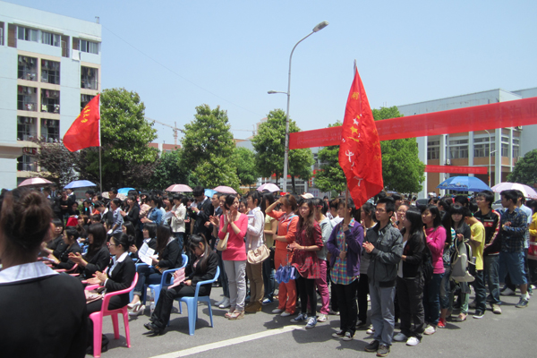 4 月 26 日 上午,我校 2012 年长株潭社区专场招聘会暨菁苹果“梦翼计划”启动仪式在含浦校区隆重举行。本活动由招生就业处主办, KCA 职业成长俱乐部承办,会上有招生就业处李世兵副处长、校团委王召亿副书记、各学院学生科老师、毕业生及在校学生代表参加。