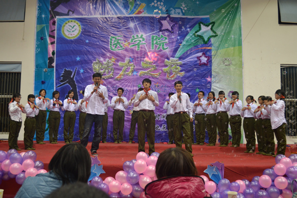 12 月 9 日晚 ,医学院在我校体育馆举行了以“三生”教育为主题的 “ 魅力之夜 ” 晚会,院长张秋雁携学院教职工、各兄弟学院教师代表、分团委副书记、学生会主席以及学院全体同学一同观看了晚会表演。