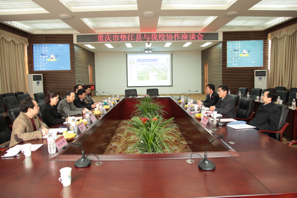 11 月 17 日 上午, 我校与附属垫江医院在含浦校区办公楼一楼会议厅就双方合作事宜召开洽谈会。校长廖端芳、副校长何清湖、医院党委副书记李新华、业务副院长卢先彬、校办、组织人事部、研究生处、教务处、科技处等部门负责人及我校三所直属附属医院的业务副院长出席了会议。
