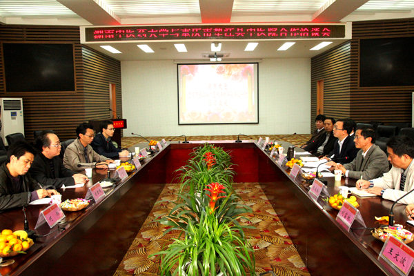 会议由何清湖主持,廖端芳代表学校热烈欢迎医院代表的到来,对其到我校招纳人才表示衷心感谢,指出,此次洽谈会的召开将会促进双方的合作迈出一大步。会上,双方就举办垫江研究生班的事宜、医院高级职称人员聘为我校兼职教授事宜、选派研究生导师事宜进行了交流讨论,并形成了初步的工作方案。针对医院提出的希望我校通过联合或派专家方式帮助改善医院薄弱专科,尤其能在肛肠、皮肤、肿瘤、 肝病等专科上进一步加强合作的问题,何清湖表示,校方支持合作,将在互相了解的基础上,针对四个专科与直属附属医院进行对口支持,学校负责监督协调。