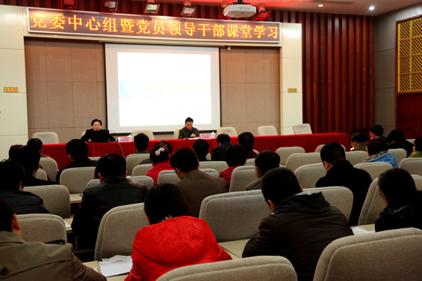 11 月 30 日 上午,学校举行党委中心组暨党员领导干部课堂学习,传达、学习湖南省第十次党代会精神。会议在含浦校区国际交流中心报告厅举行,校(院)党委书记黄惠勇同志主持会议,全体校(院)领导出席。湖南省第十次党代会代表、我校针灸推拿学科学术带头人常小荣同志宣讲省党代会主要精神,校(院)处级干部、机关职能部门科级干部以及省、市人大代表、政协委员、民主党派主委等百余人听取报告。