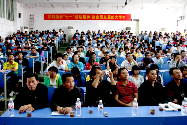 蔡光先阐释了“七一”讲话的主要内容,即“三件大事、四个选择、两个不愧为、一个基本结论、五个必须坚持、五个坚定不移”,强调了经济的发展对于国家发展的重要意义,并号召大家要了解党的思想,关心政治,关注时事。蔡光先传达了胡锦涛总书记对于青年人的深切关怀和期望,并指出,国家的发展归根结底依靠青年人,而大学生肩负着国家的重任。他进一步表示,学校“一切为了学生,为了学生一切”,广大学子应当秉承校训精神,珍惜青春时光,增长真才实干,勇担时代使命。