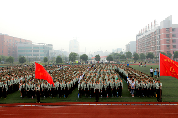 9 月 4 日 , 2011 级新生军训动员大会在含浦校区综合体育广场举行。研究院党委书记、学校副校长谭达全、学校党委副书记陈弘、中国人民解放军国防科技大学指挥军官基础教育学院五大队一中队中队长李国栋出席大会。校办公室、党委宣传部、武装部、学生工作处、校团委等学校相关职能部门及各学院领导和来自国防科技大学指挥军官基础教育学院的全体教官参加典礼。大会由学生工作处处长廖菁主持。