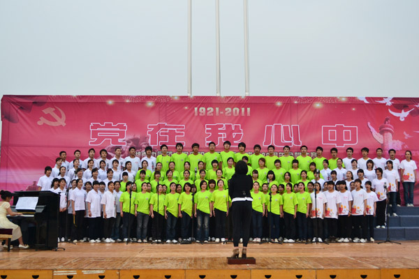 飞扬歌声,吟唱难忘岁月;熟悉旋律,演绎时代激越。 5 月 24 日 ,为庆祝中国共产党成立 90 周年,唱响时代主旋律,营造校园红色艺术氛围,校团委在含浦校区南门广场隆重举行了 “党在我 心中” 庆祝建党 90 周年合唱比赛。学校纪委书记秦裕辉出席,党(校)办、组织人事部,党委宣传部,学生工作部、校工会,校团委等相关部门负责人担任评委。