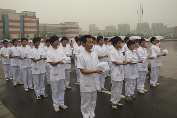 全体学生合唱《中国护士之歌》之后,由护理学院院长陈燕等院领导与教师为其授帽。学生们戴上象征圣洁的燕帽,在南丁格尔雕像前庄严宣誓,表示将在护理这个平凡的工作岗位上用爱心与责任串起生命的奇迹。