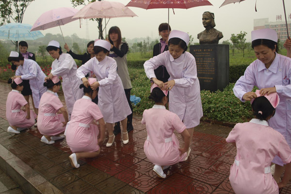 5月12日下午,护理学院300余名2010级学生在含浦校区南丁格尔雕像前,举行国际护士节授帽仪式。校党委副书记、副校长黄政德出席仪式并致辞,希望同学们不断学习和发扬南丁格尔的高尚品质,勤奋学习,立志成才。
